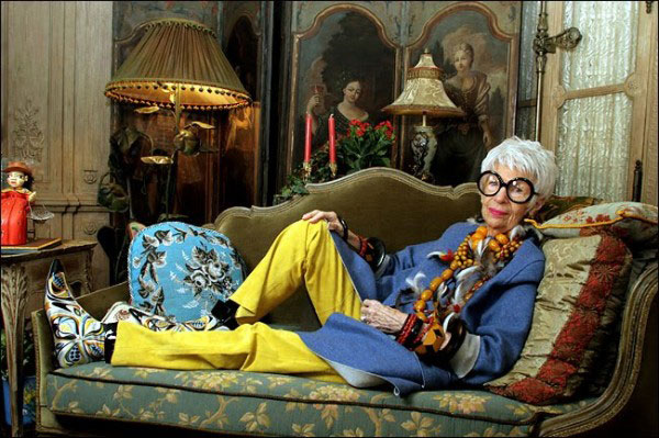 È Iris Apfel. Ha 93 anni e una vita alle spalle spesa nell’industria della moda. È un’icona di stile nata e vissuta a New York che ha fatto dei suoi grandi occhiali e degli appariscenti gioielli, indossati da sempre, i suoi marchi di fabbrica. È stata consulente di design di nove presidenti degli Stati Uniti, tra cui John F. Kennedy e Bill Clinton. Il suo guardaroba, un tesoro da oltre 900 pezzi, è spesso oggetto di mostre e nel 2005 il Metropolitan Museum of Art di New York le ha dedicato l’esposizione “Rara Avis (Rare Bird): The Irreverent Iris Apfel”. Nel 2014 è stata poi protagonista del documentario che porta il suo nome, girato da Albert Maysles, la cui prima è stata trasmessa al New York Film Festival. Nel 2013 The Guardian l’ha inserita tra i cinquanta over 50 meglio vestiti del mondo, mentre l’Università del Texas le ha assegnato una cattedra nel corso di fashion design (e anche una laurea ad honorem).